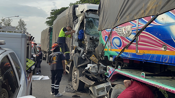 เกิดอุบัติเหตุ “รถบรรทุกชนท้ายกัน” บนถนนบายพาสหัวหิน หนุ่มคนขับรถบรรทุกสิบล้อเสียชีวิตในที่เกิดเหตุ 1 ราย