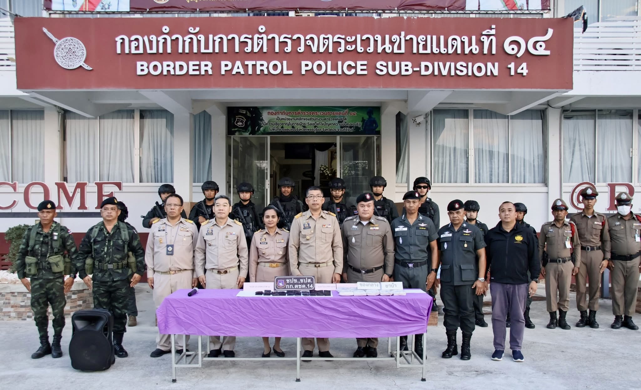 เมื่อวันที่ 25 กุมภาพันธ์ 2569 ที่กองกำกับการตำรวจตระเวนชายแดนที่ 14 ต.ห้วยทราย อ.เมืองประจวบคีรีขันธ์ จ.ประจวบคีรีขันธ์ ภายใต้การอำนวยการของนายสิทธิชัย สวัสดิ์แสน ผู้ว่าราชการจังหวัดประจวบคีรีขันธ์ เจ้าหน้าที่ชุดปฏิบัติการ ตชด.14 พร้อมหน่วยเฉพาะกิจจงอางศึก ร่วมกันแถลงผลการจับกุมเครือข่ายค้ายาเสพติดรายสำคัญในพื้นที่