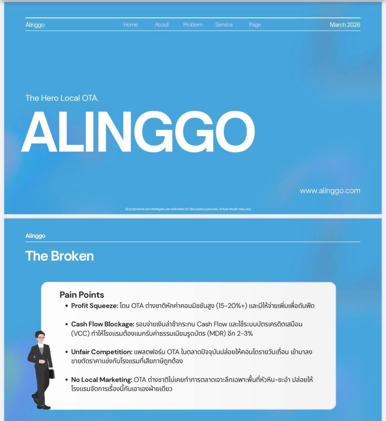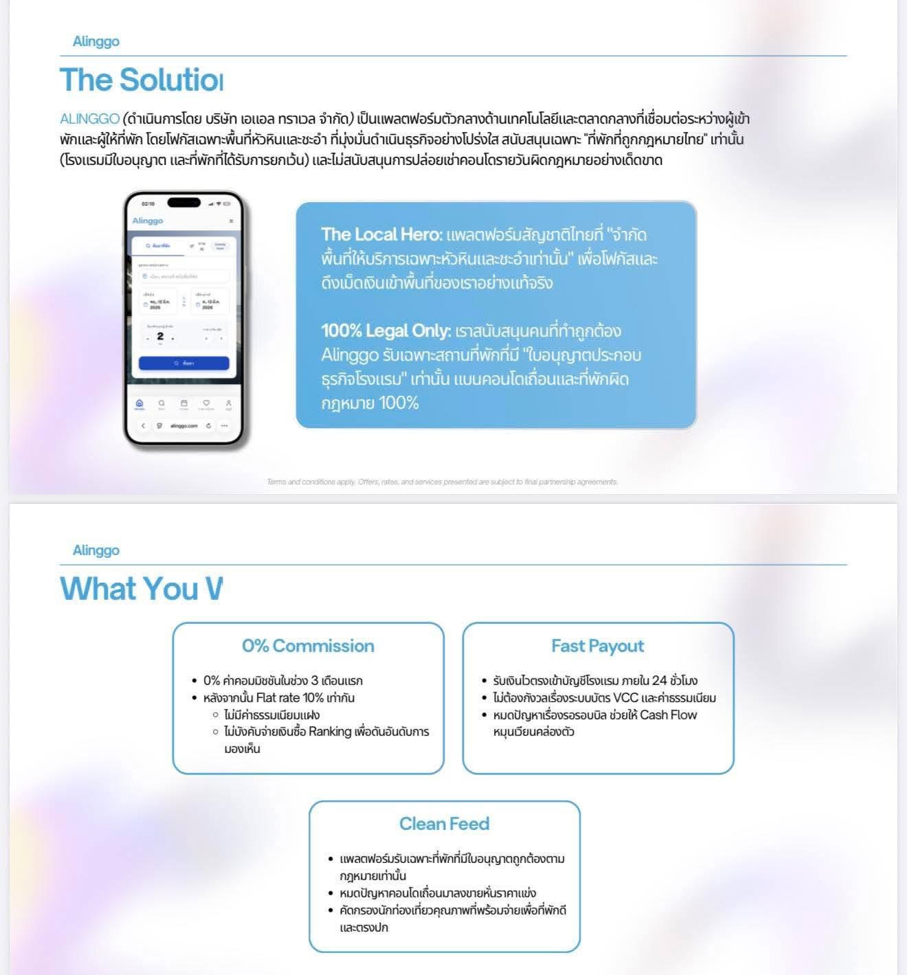 นอกจากนั้น Alinggo ยังเตรียมเดินหน้าทำการตลาดแบบครบวงจร เพื่อดึงดูดนักท่องเที่ยวคุณภาพเข้าสู่พื้นที่ พร้อมจัดทีมงานลงพื้นที่ให้บริการแบบ “White-glove service” ดูแลตั้งแต่การติดตั้งระบบ การจัดการหลังบ้าน ไปจนถึงการให้คำปรึกษาด้านการขาย โดยไม่มีค่าใช้จ่ายเพิ่มเติม